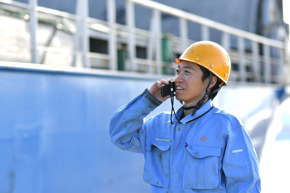 現場では1人で動くことも多いというIさん。フォアマン(船舶の船員さんや協力会社の現場作業を行うスタッフさん)への指示や作業上で瞬時に判断しなければならないことも多く、その臨機応変な判断力が自己成長につながったのだとか。あとは想像していたよりも英語を使う機会が多いそうで、船舶のほとんどが外国船籍なので、最低限の英語でのコミュニケーションはすぐにできるようになるんだそうです。もちろんTOEICや英検などのスコアや資格は不要です。